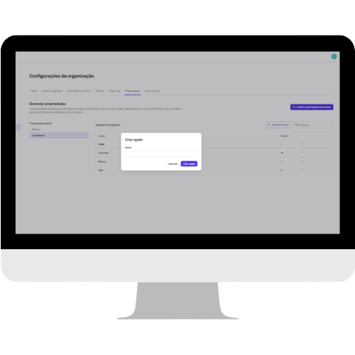 ⚠️Aviso: Lembre-se de que essas propriedades são preenchidas pelo próprio administrador, o que significa que você pode criar quantas forem necessárias de acordo com a localização dos usuários da empresa.